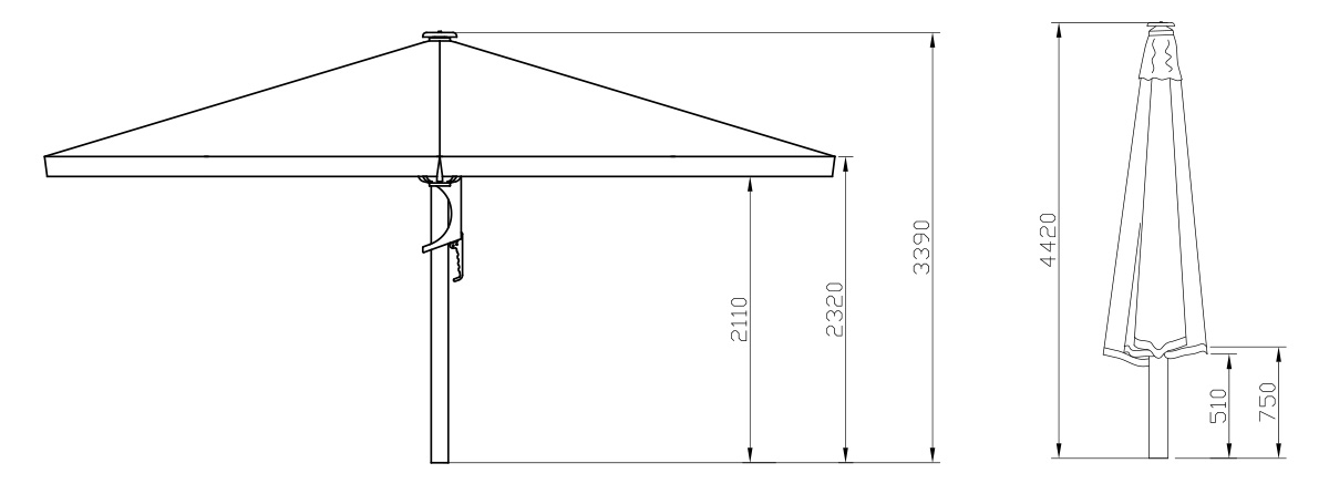 A parasol should of course primarily provide shade from the sun, but once the basics are in place, you can turn up some cooler and smarter features that in several cases make the parasols multifunctional elements in the decor of your café, restaurant, or hotel outdoor environments. For example, giant parasols can also protect against evening dew and light rain, and if you choose to install gutters between the parasols, you risk not having rainwater drip down on the guests.