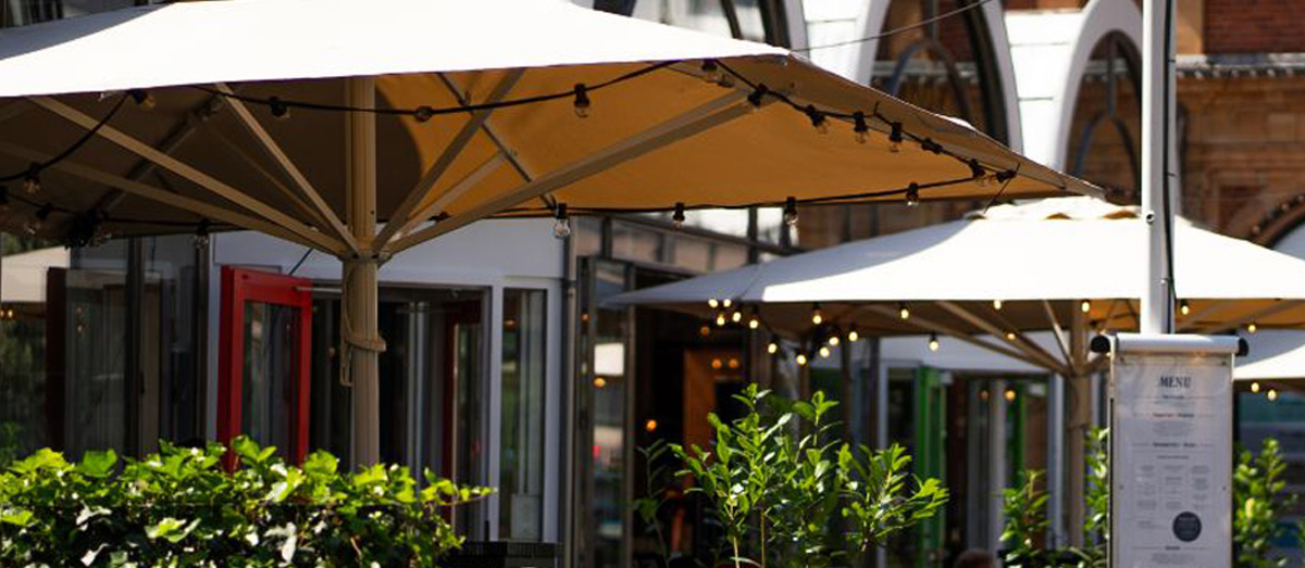 At Zederkof, you will also find a wide selection of spare parts and accessories for giant parasols – among other things decorative light chains, practical LED lamps, heat lamps and gutters that can make it possible to sit outside, even when it is dark, cool, or raining. This can help extend the season for outdoor serving, as it offers protection against the Danish weather, no matter which side it comes from. If for one reason or another you need new parasol covers, you can also find them at Zederkof. They can be used if you want to switch to a different color or further extend the lifespan of your parasol.