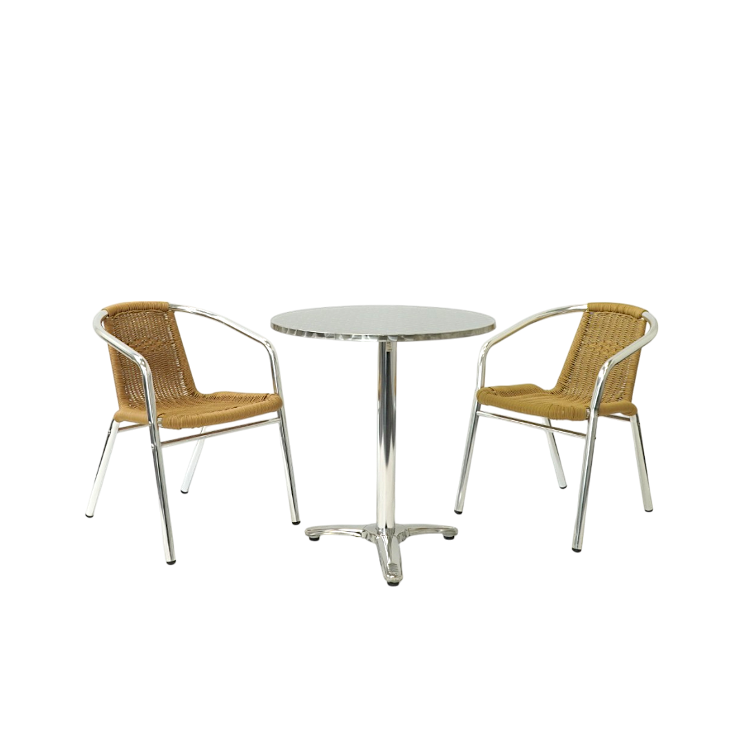 Vil du have en stilren og praktisk caféplads med et naturligt udtryk – uden selv at skulle sammensætte møbler? Cafépakke Amsterdam giver dig en komplet løsning med to caféstole, rund bordplade og let aluminiumsstel – alt i høj kvalitet, klar til brug og til en skarp pakkepris.