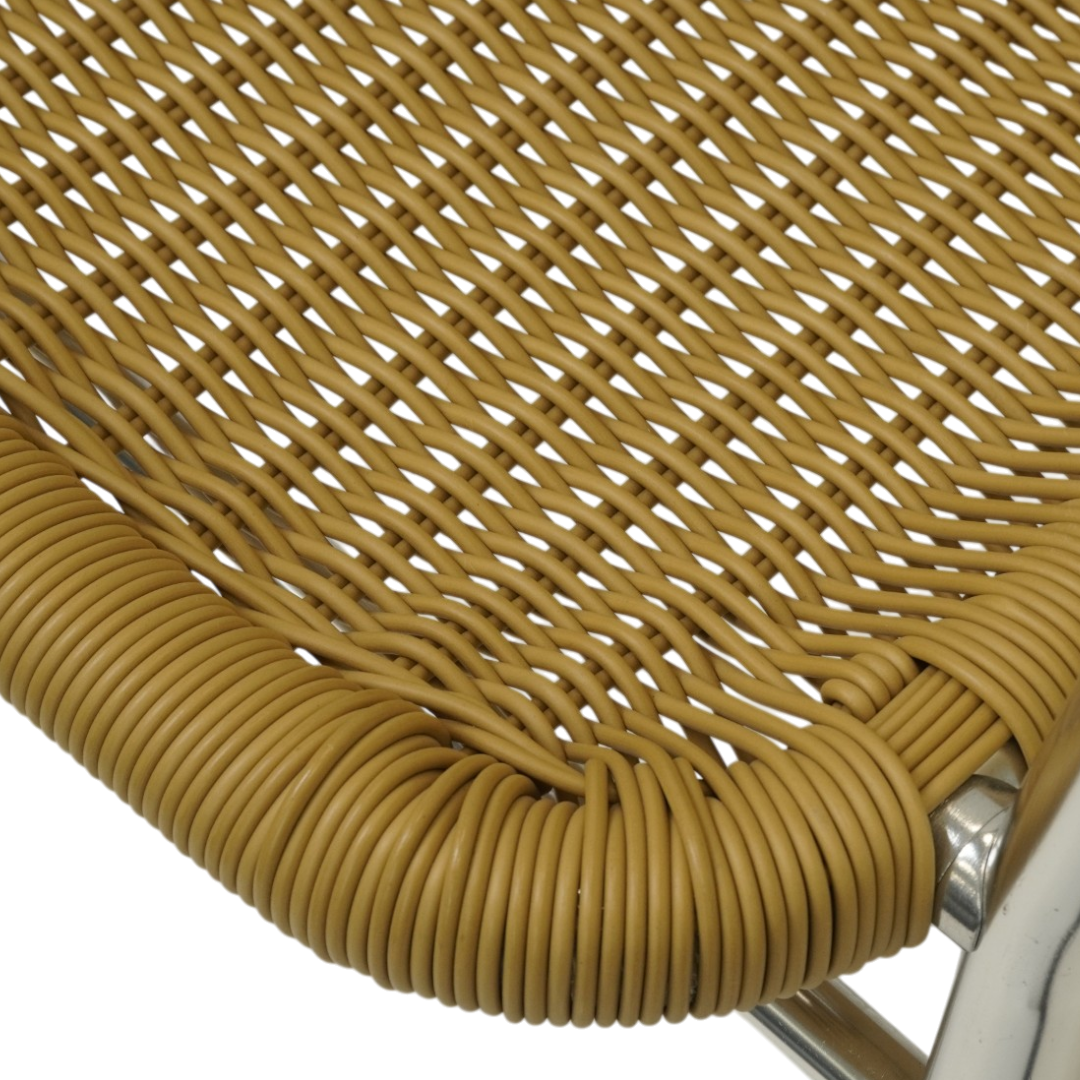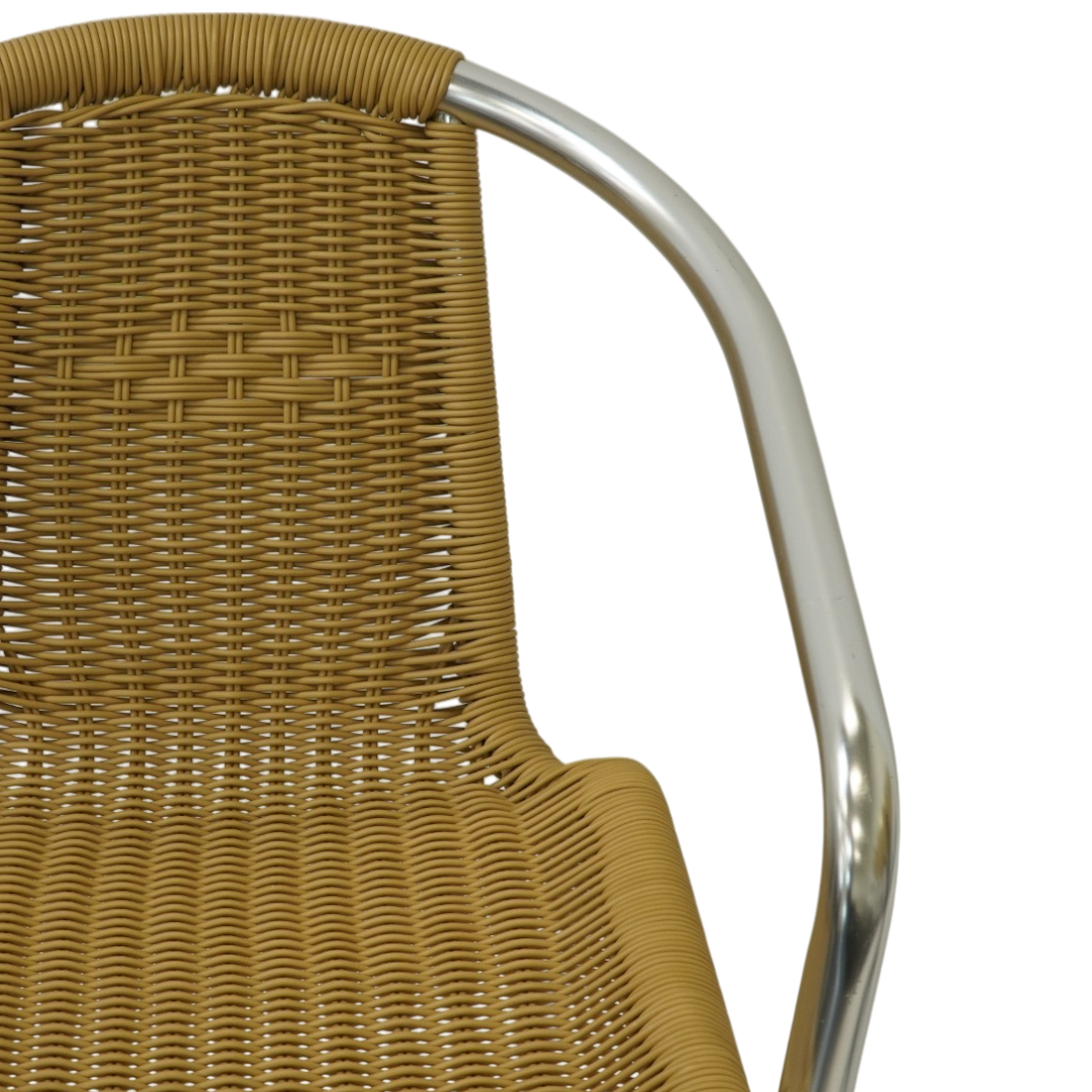 Elegant caféstol med flettet sæde og ryglæn i naturfarve. Fremstillet i holdbare materialer – let, stabelbar og velegnet til både inde og ude. Klassisk design med en moderne twist.