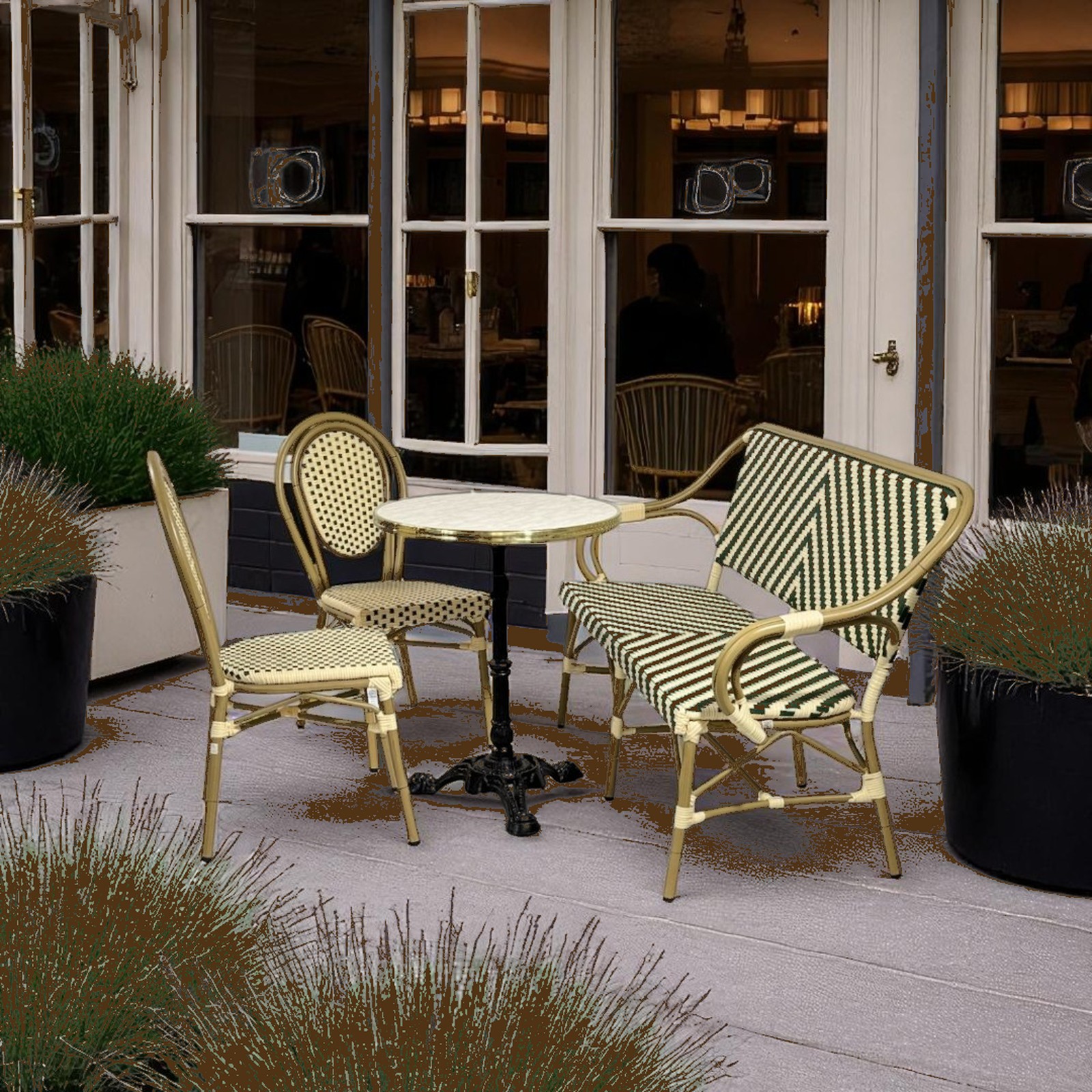 Cafépakke Paris m. bænk og 2 stole – Fransk caféstemning i slidstærk kvalitet