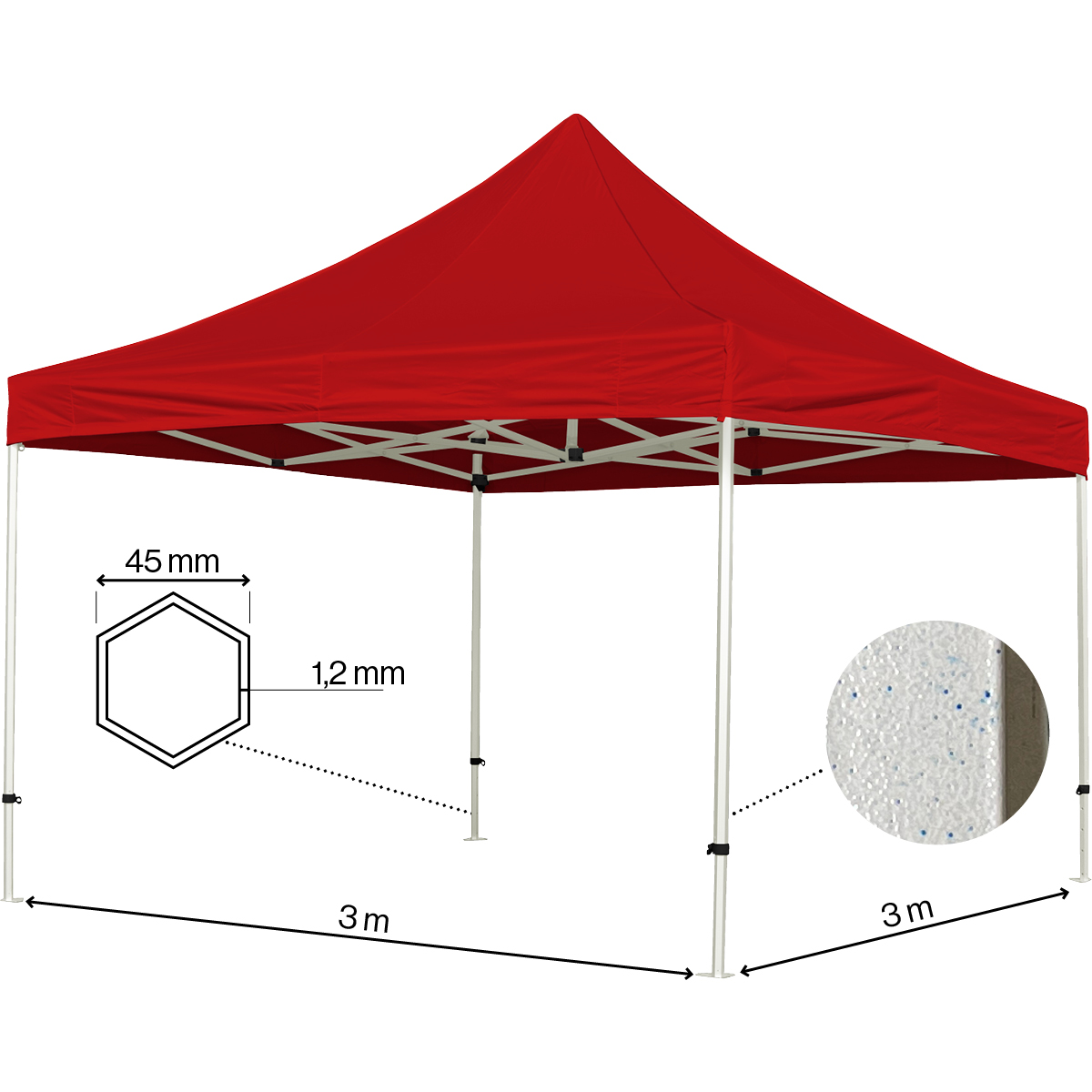 Note: For a complete 3x3 m folding tent, select 4 pieces of 3 m sides. The sides can be mixed as you like – for example, 2 standard sides, 1 with a door, and 1 with a window.