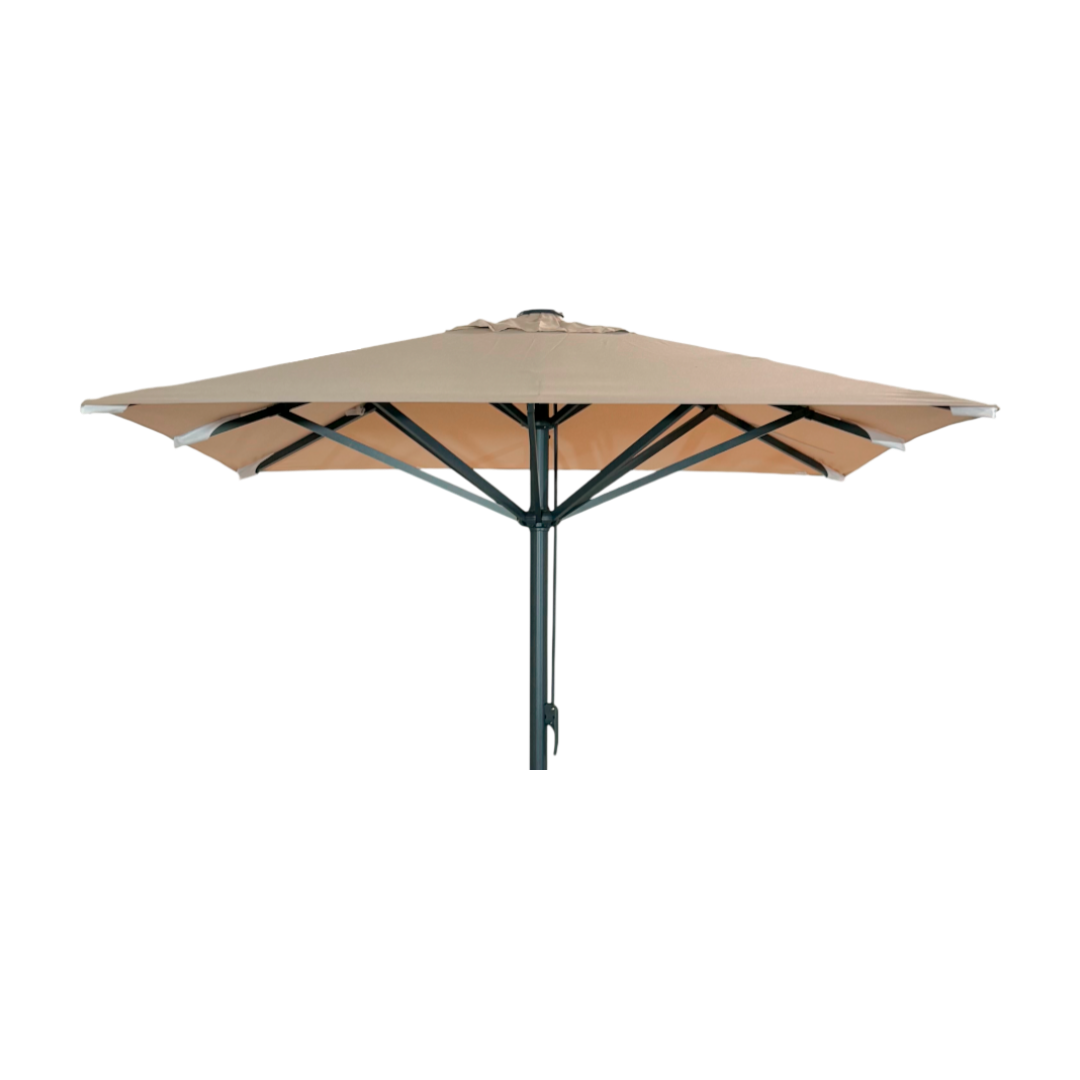 Parasol canopy in 3×3 m polyester is developed for professional use at cafés, restaurants, hotels, and other outdoor serving areas. The size makes it ideal for small and medium terraces where guests should be able to sit comfortably in the shade on sunny days.