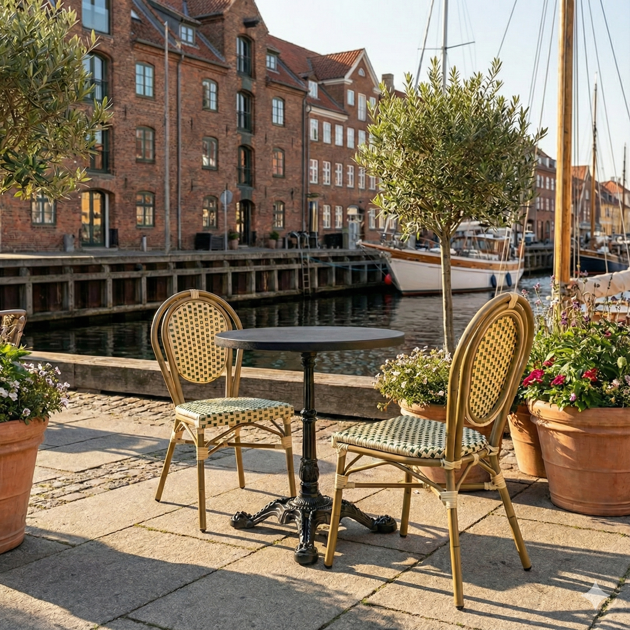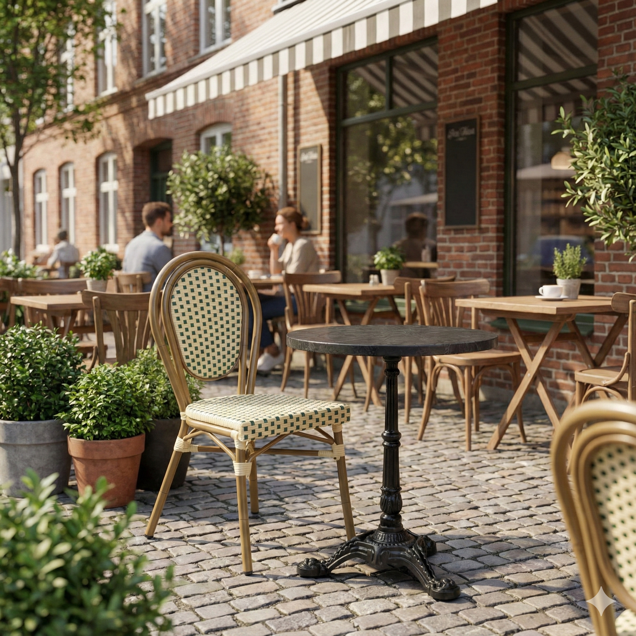 The gray marble-look tabletop is suitable for both indoor and outdoor use and allows for a consistent, professional appearance across tables. An obvious choice for business customers who want high quality, low total cost, and a timeless design that lasts season after season.