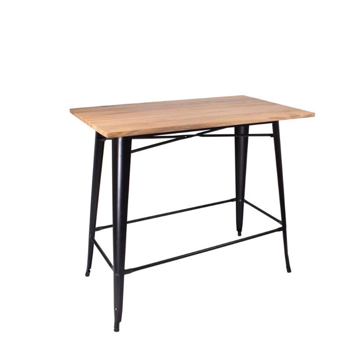 The Hamburg stackable standing table in metal and wood has a robust, industrial look. The wooden tabletop is secured with two wing screws for easy transport and setup.