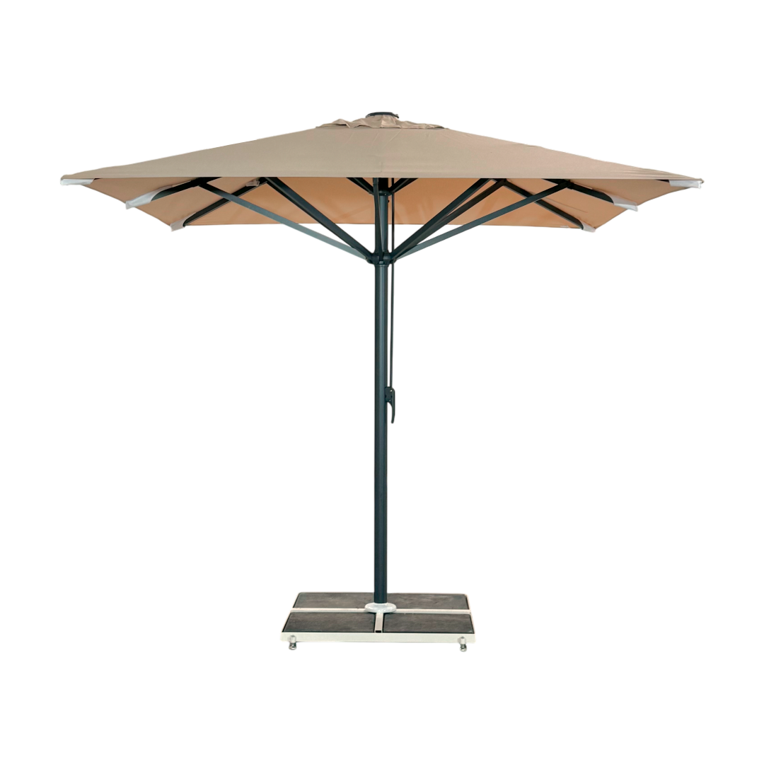Transform your outdoor area with this 5×5 meter giant parasol, offering shade and elegance on a large scale. Perfect for professional environments and larger events where comfort and quality are the focus.