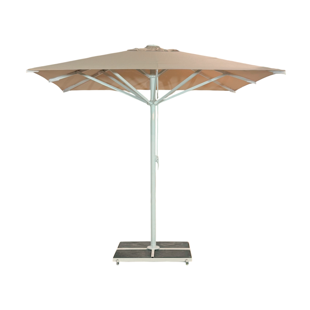 Transform your outdoor area with this 5×5 meter giant parasol, offering shade and elegance on a large scale. Perfect for professional environments and larger events where comfort and quality are the focus.