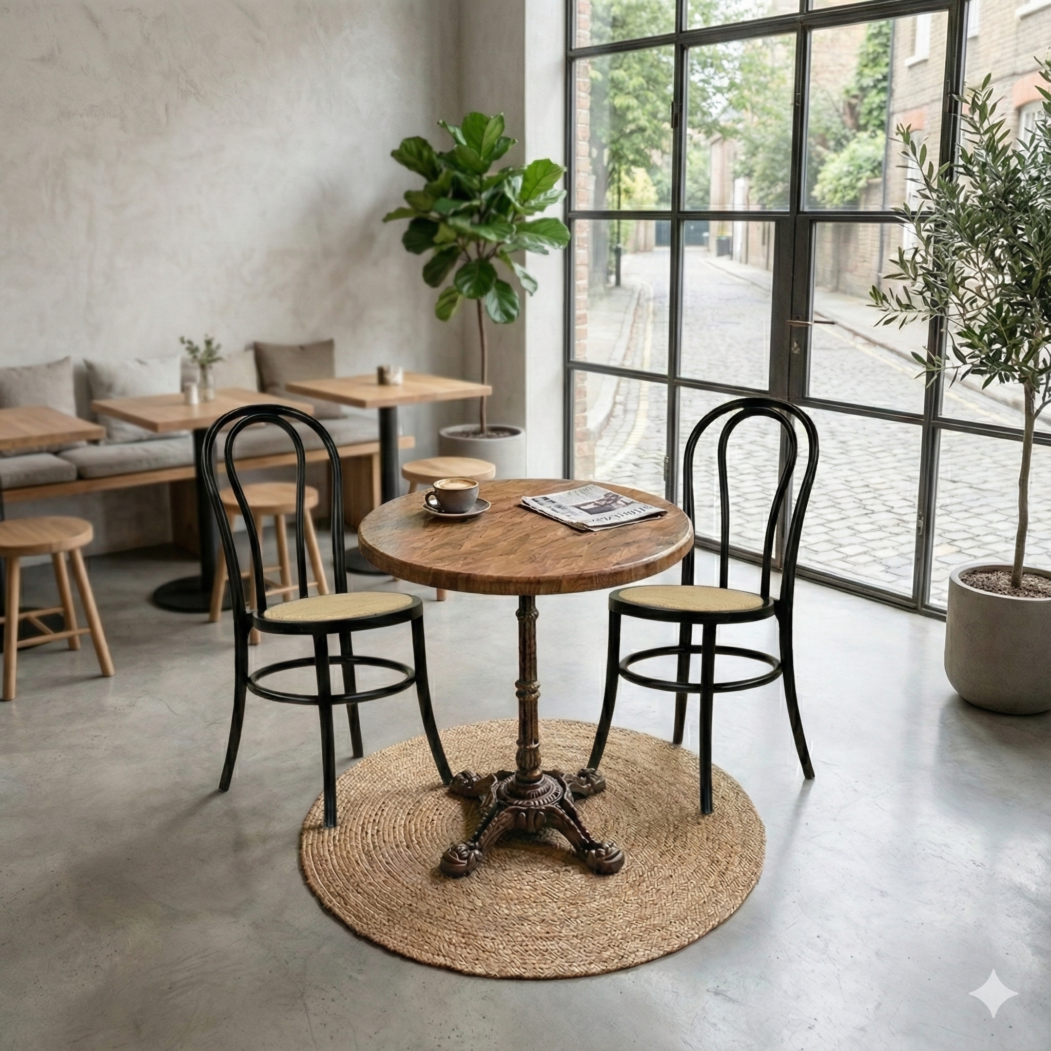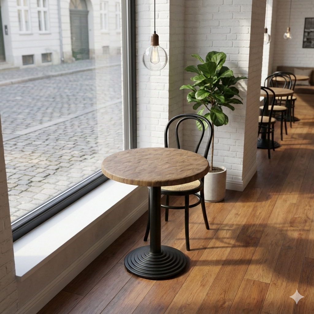 The tabletop is made of heat-pressed laminate and designed for intensive commercial use. The surface combines the aesthetics of parquet with the functional advantages of laminate: high wear resistance, moisture and stain resistance, as well as easy cleaning in daily operations. This makes the tabletop ideal for busy serving environments with high demands for both hygiene and durability.