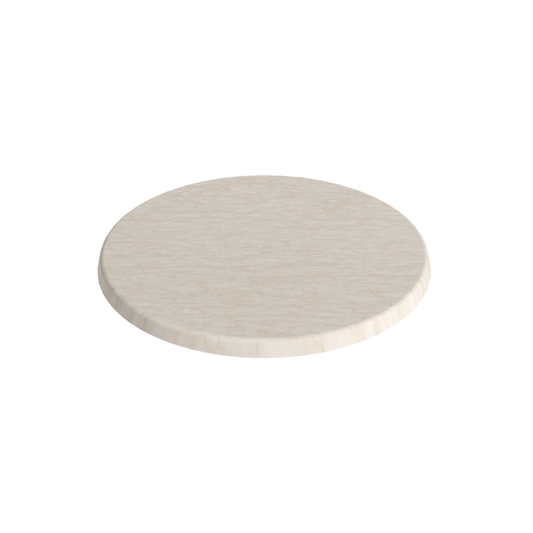This round tabletop in marble look is an elegant and reliable choice for cafes, restaurants, hotels, and event environments where design and functionality go hand in hand. The light, stone-inspired expression provides an exclusive and inviting surface that enhances the overall impression without the drawbacks typically associated with real marble.