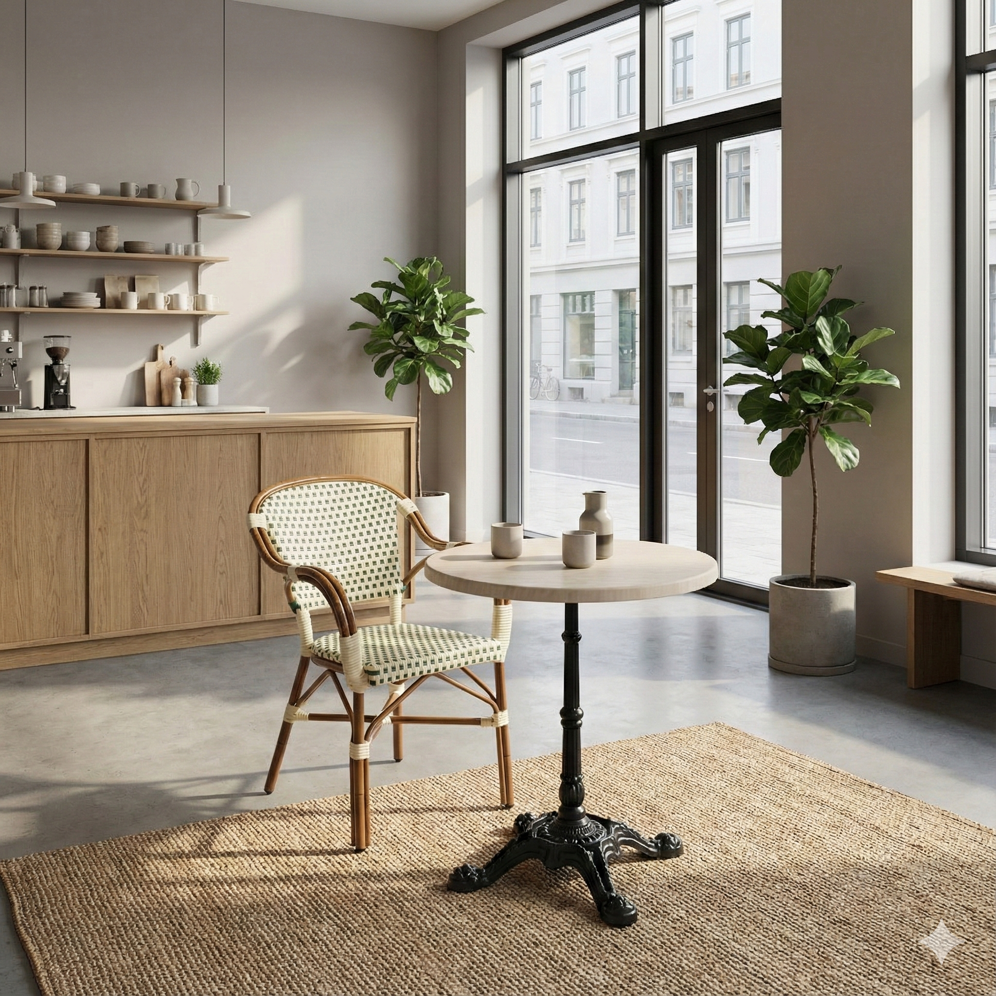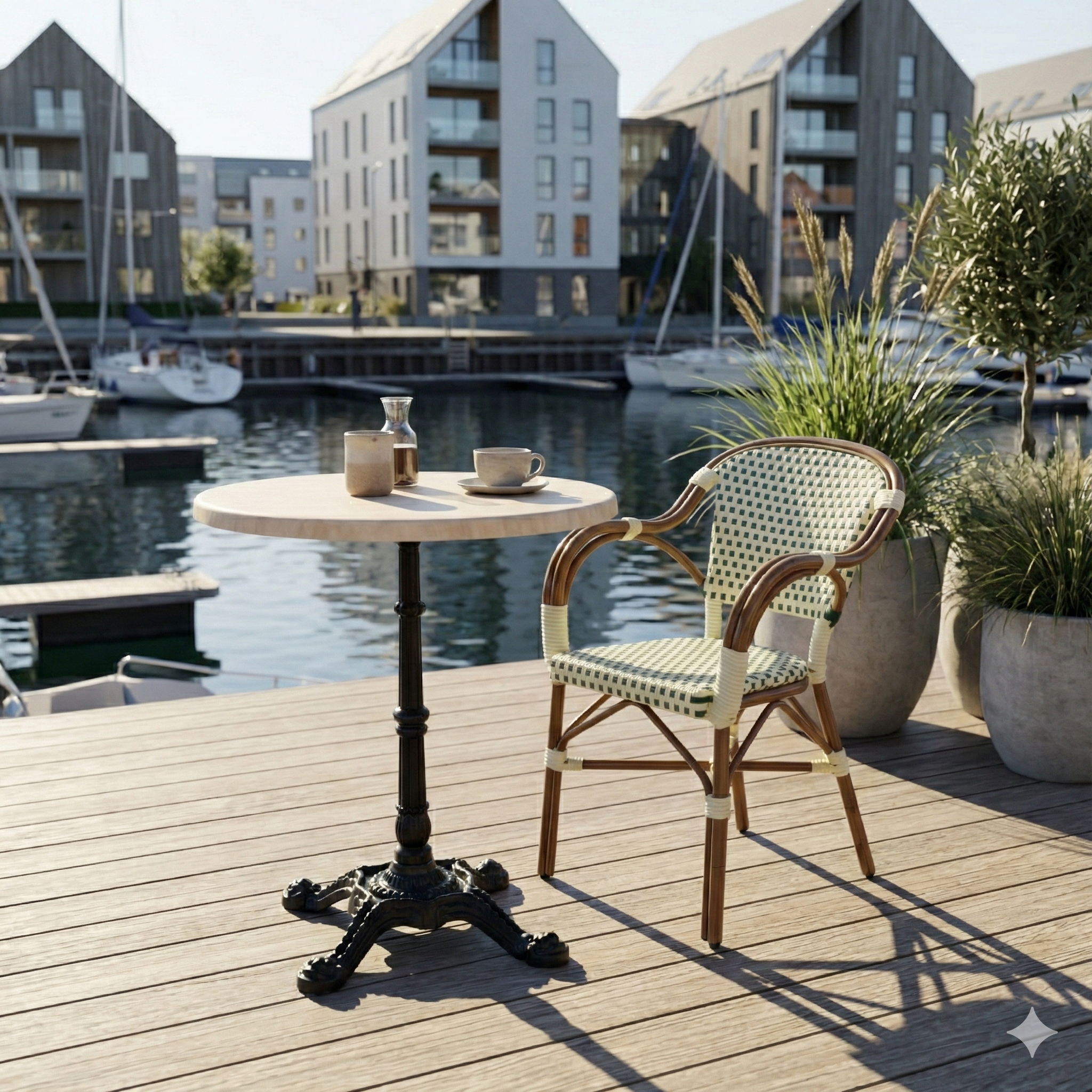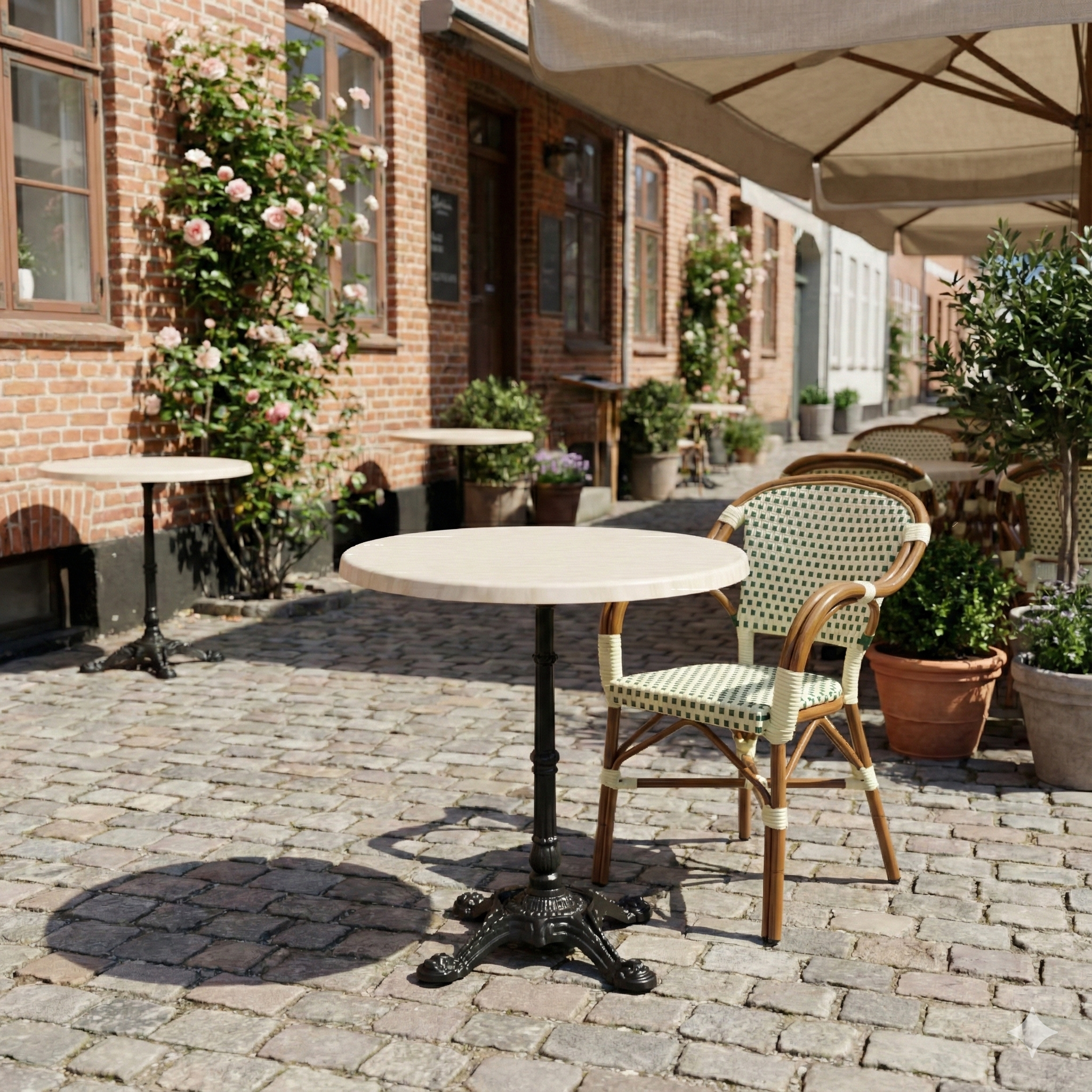 The round shape creates a natural and welcoming table arrangement that supports a great guest experience and flexible layout. A professional solution for anyone who wants a sleek marble look combined with low maintenance and high operational reliability – both indoor and outdoor.