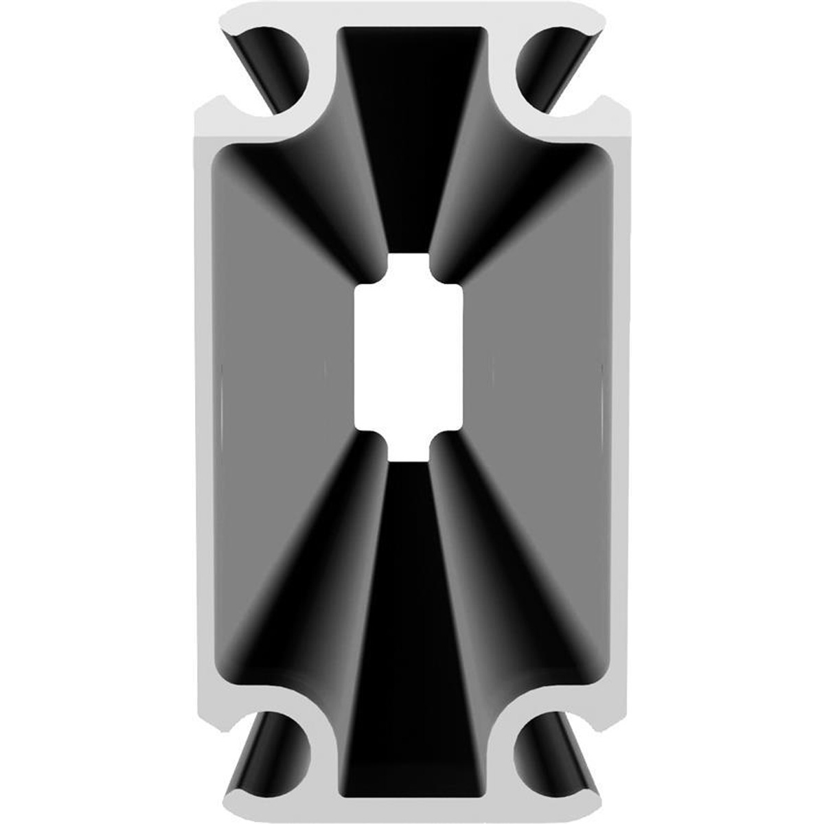 Aluminum made from extruded aluminum profile with 4 channels using the market’s strongest alloy (strength) 6061/T6 93.2x48x2.4 mm.