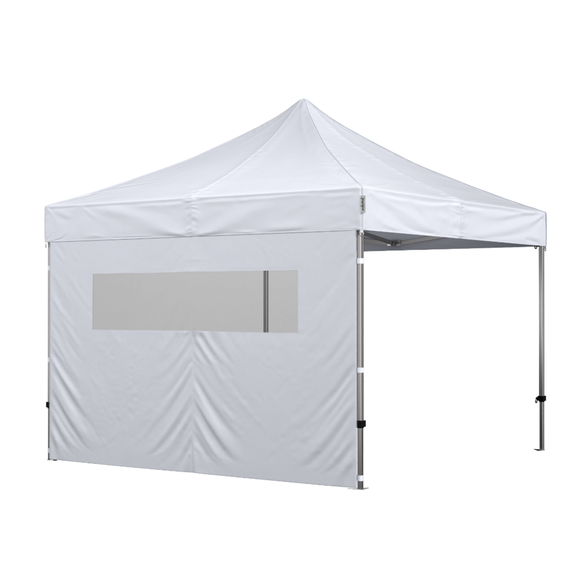 Closed side with a window made of transparent, strong plastic. The side provides no access to the standup tent.