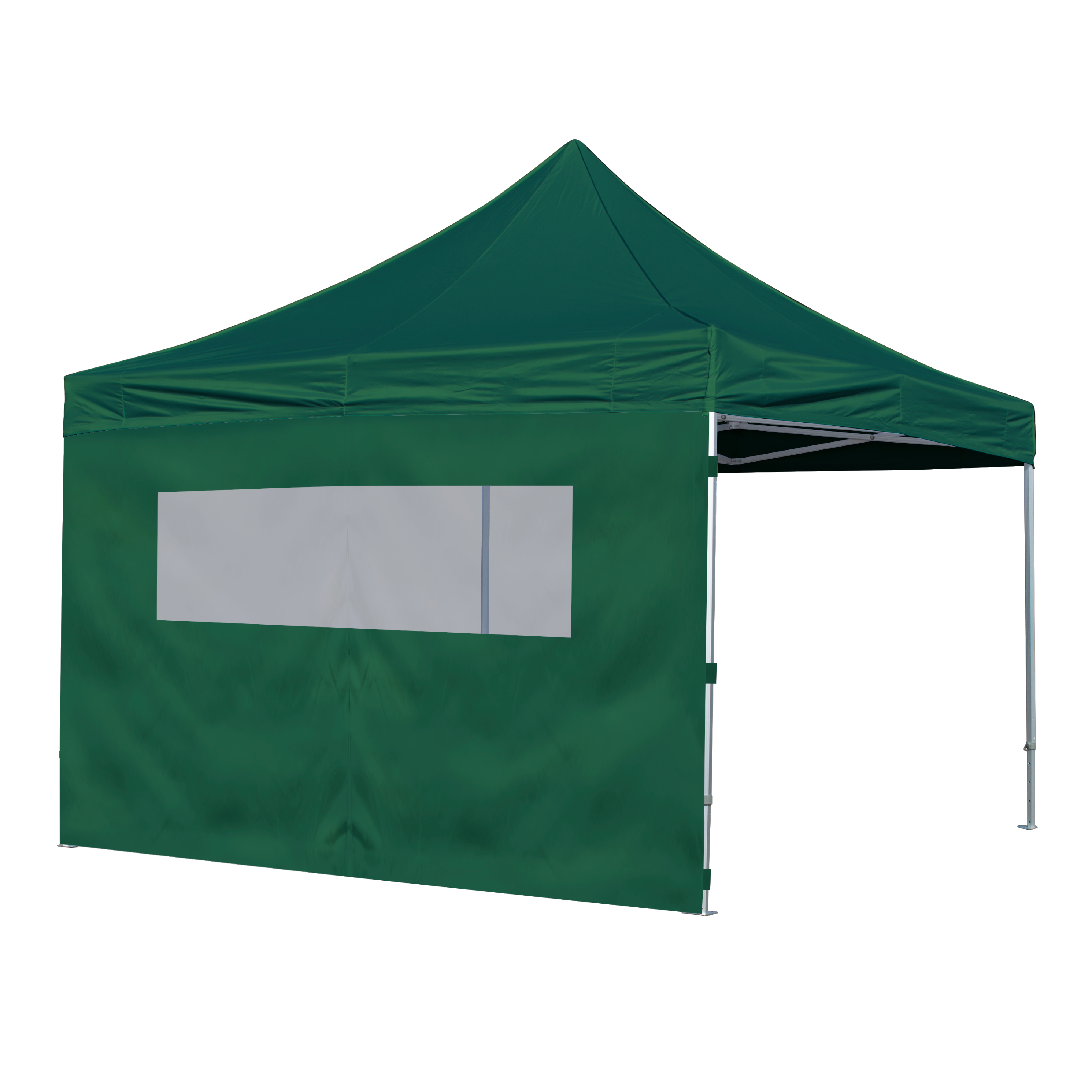 Closed side with window made of transparent, strong plastic. The side provides no access to the standup tent.