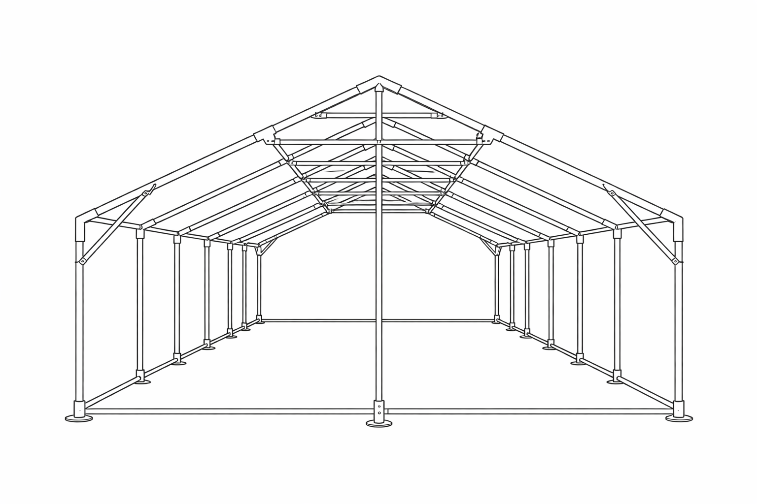 A complete Tent for Event tent of 6×12 meters can be set up by 2 men in 2-3 hours. The tents are built with a focus on efficient assembly and repeated setup and takedown. Assembly instructions can be downloaded under Instructions and data.