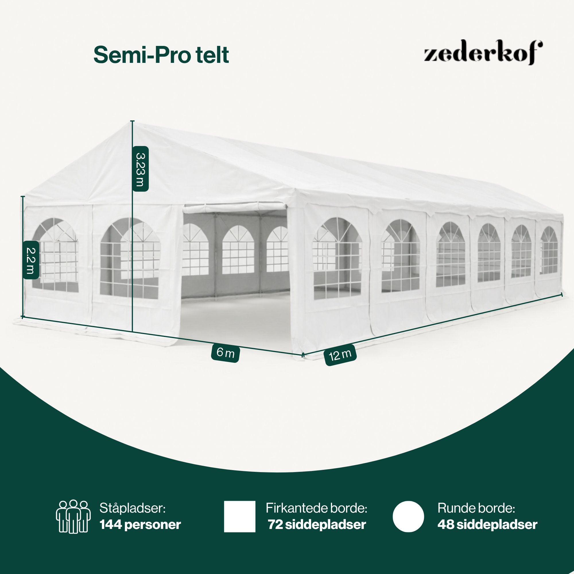 6×12 meter complete Tent for Event tent in professional quality, developed by professionals and inspired by PRO TENTS. The system is built as a well-thought-out modular system, making setup and takedown quick and easy. The split solution replaces hundreds of screws and significantly reduces assembly time, while the eyelet solution keeps the sides tight and stable in place.