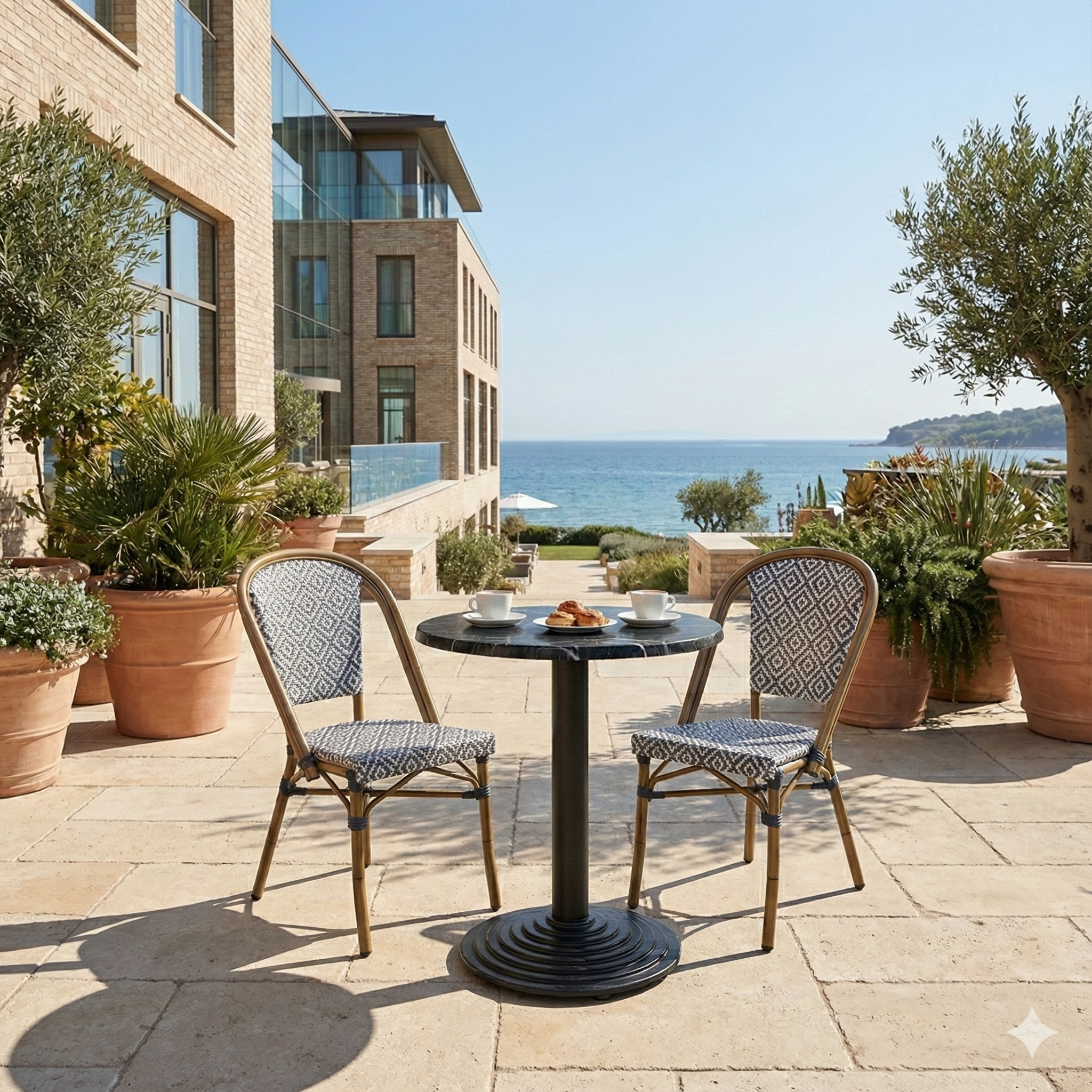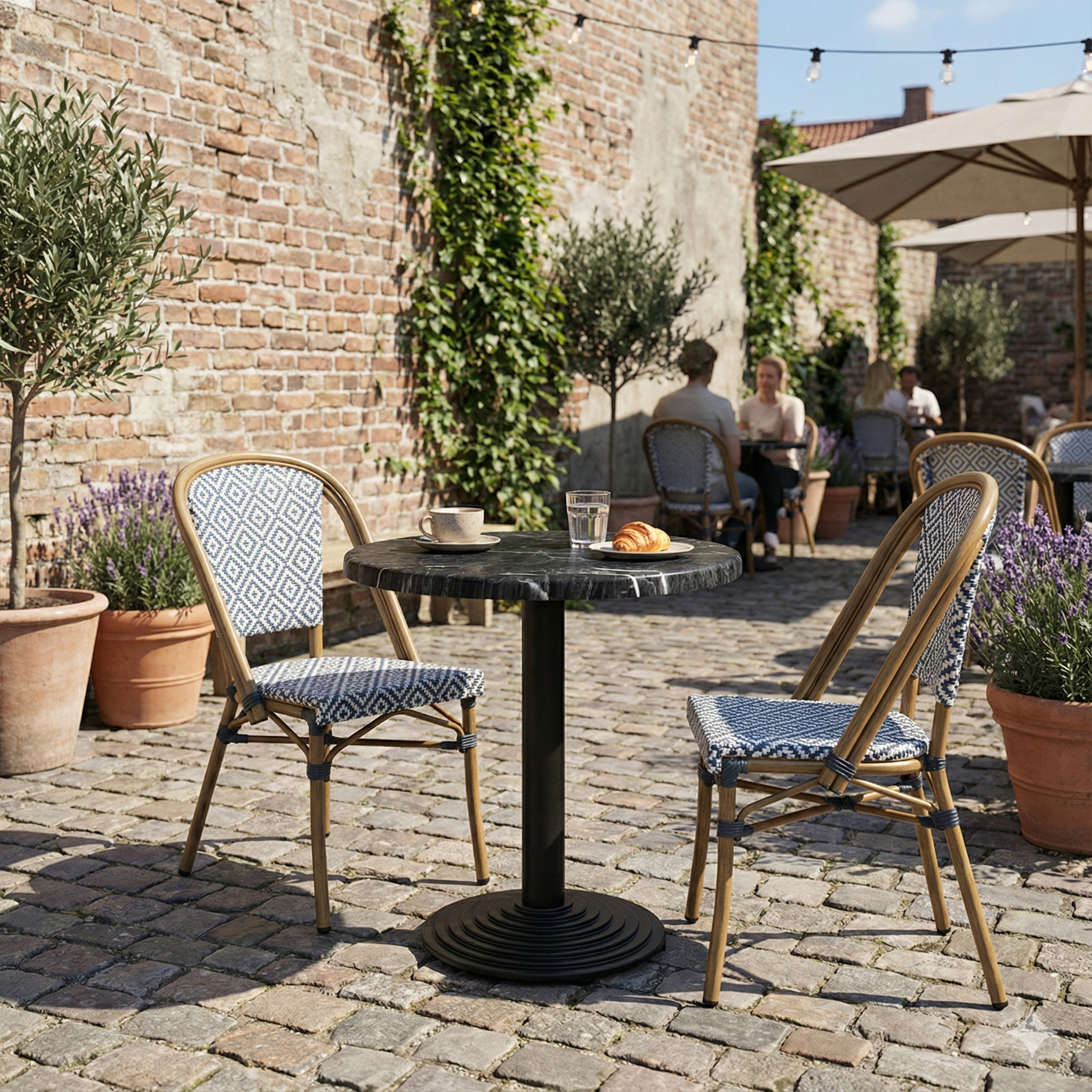 The round shape contributes to an inviting and flexible table arrangement, which supports a good guest experience and efficient use of space. A professional solution for everyone who wants an exclusive marble look combined with low maintenance and high operational reliability – both indoor and outdoor.