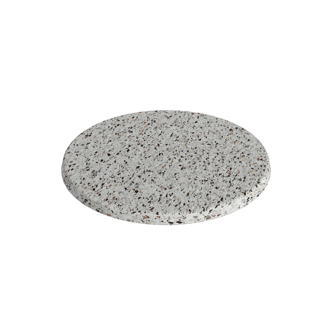 This round tabletop in terrazzo look is a modern and distinctive choice for cafes, restaurants, hotels, and similar professional environments where a sleek and contemporary expression is desired. The light terrazzo-inspired design with fine stone fragments gives the tabletop an exclusive and vibrant appearance that creates visual interest without being dominant in the decor.