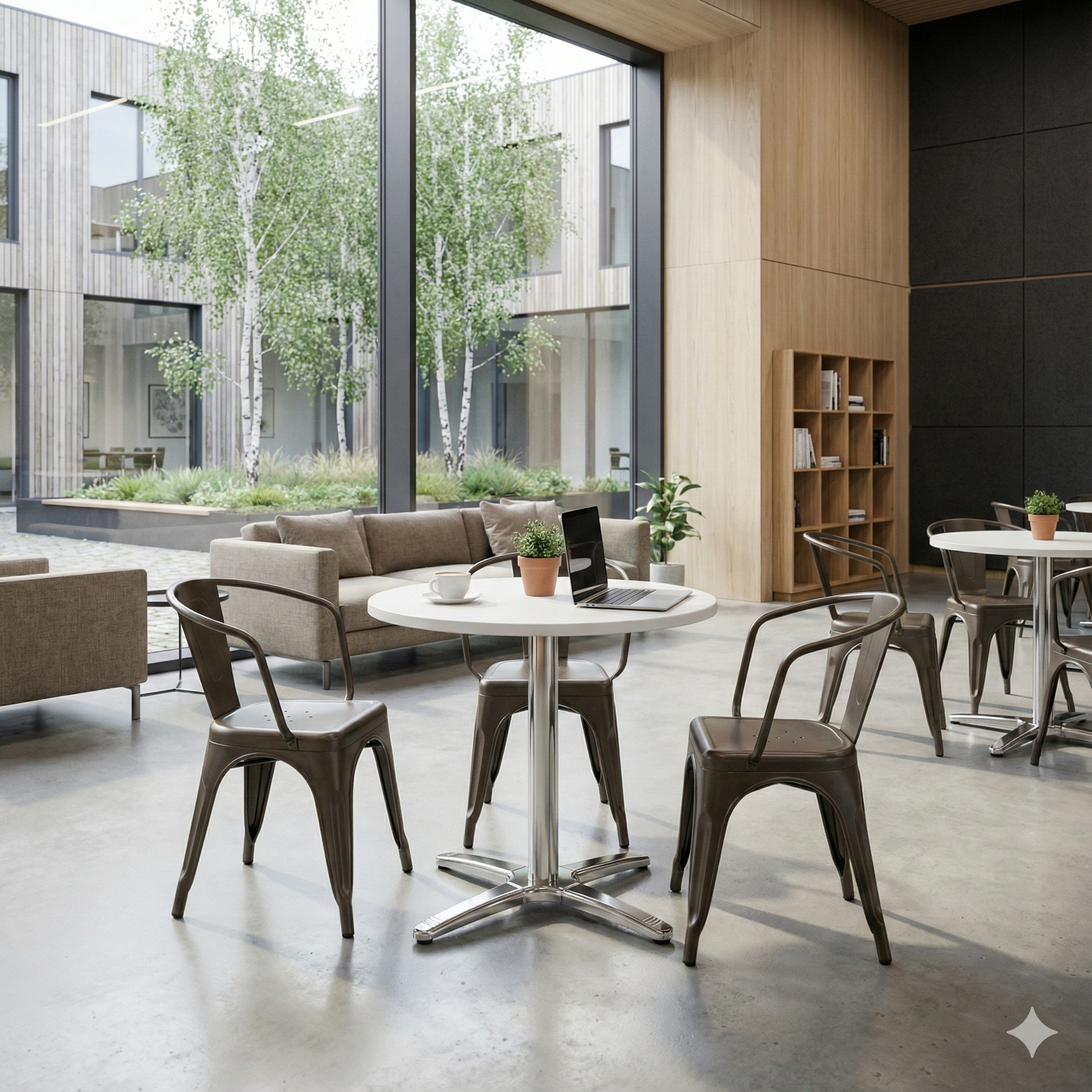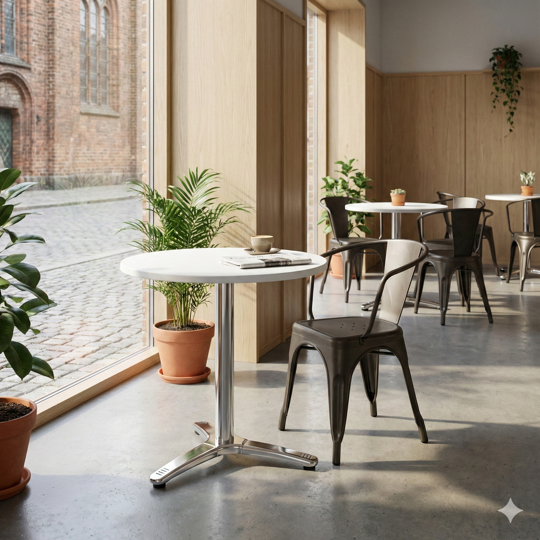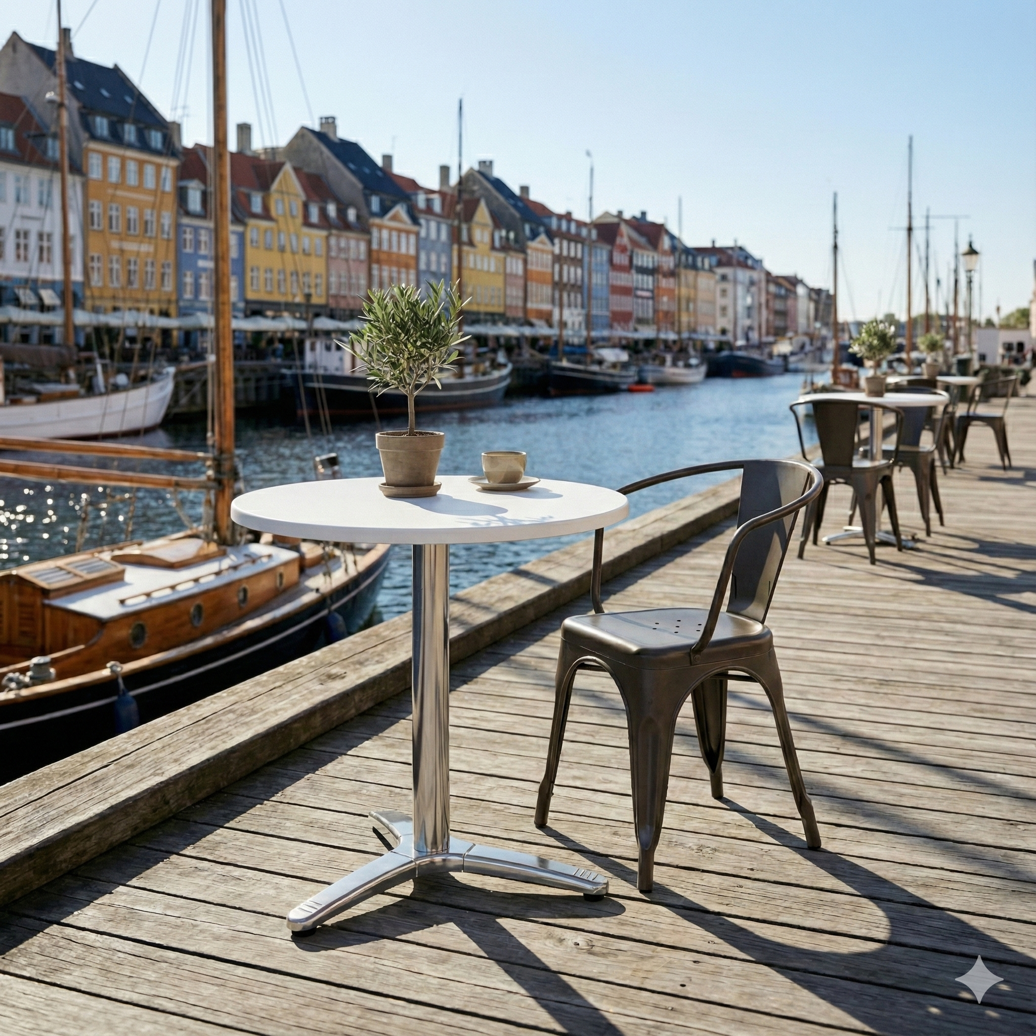 The round shape supports a flexible table arrangement and creates a pleasant guest experience, where space is used efficiently. A reliable solution for professional buyers who want low maintenance and a consistent, bright appearance – both indoor and outdoor.