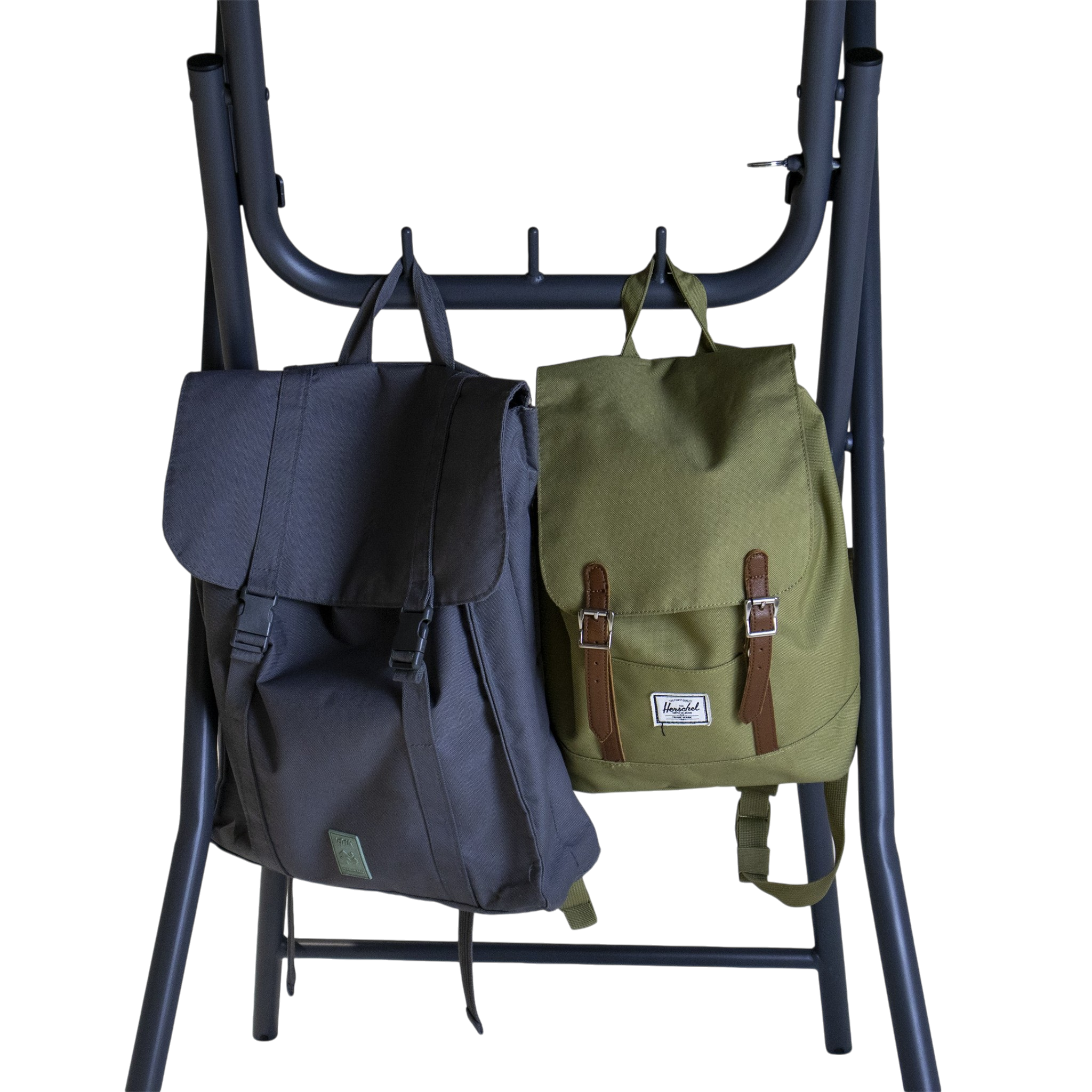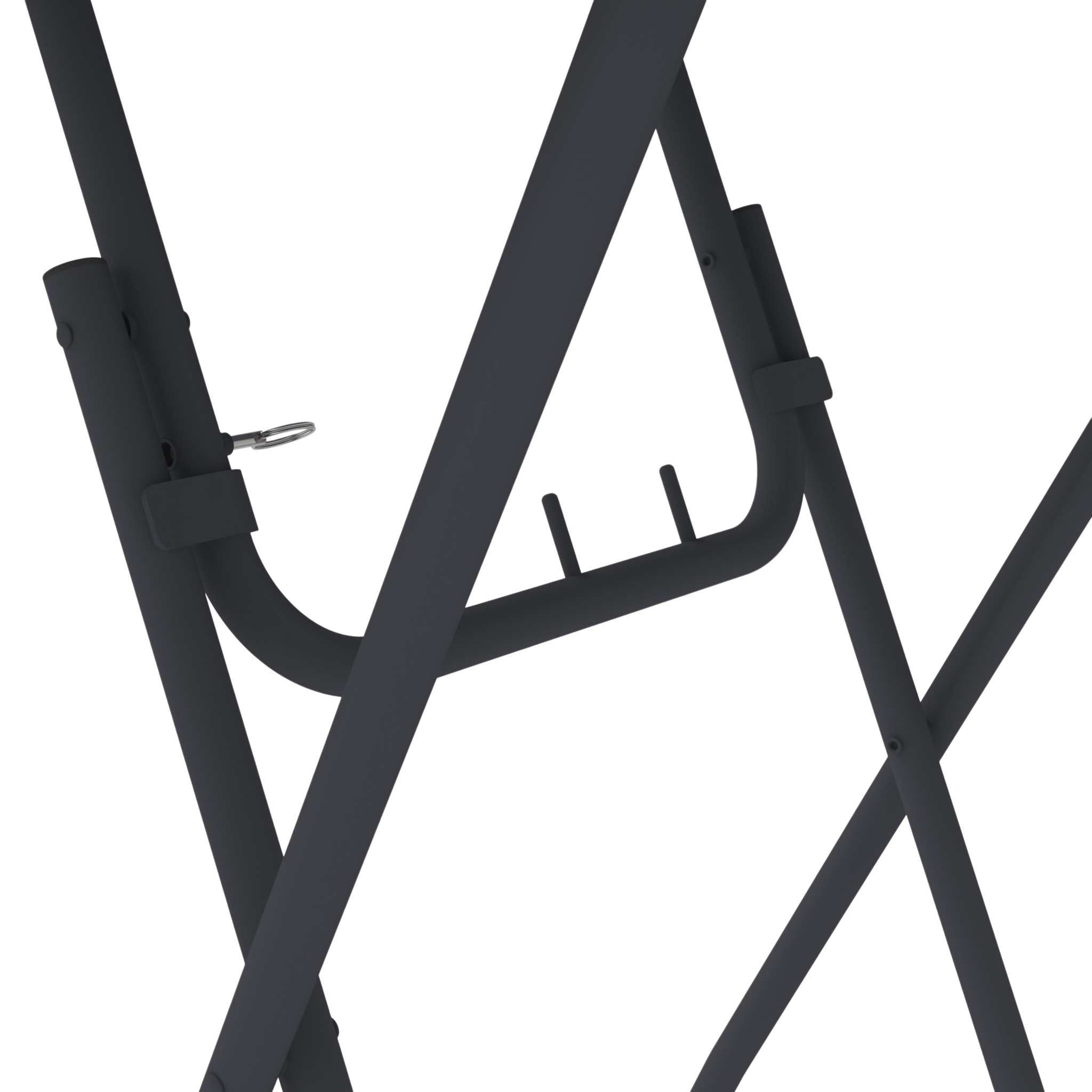 The square shape makes it easy to place multiple tables together in modules or set them up individually in smaller zones. Integrated hooks under the tabletop provide practical hanging for bags and personal belongings – a detail that increases guest comfort and keeps the floor area free.