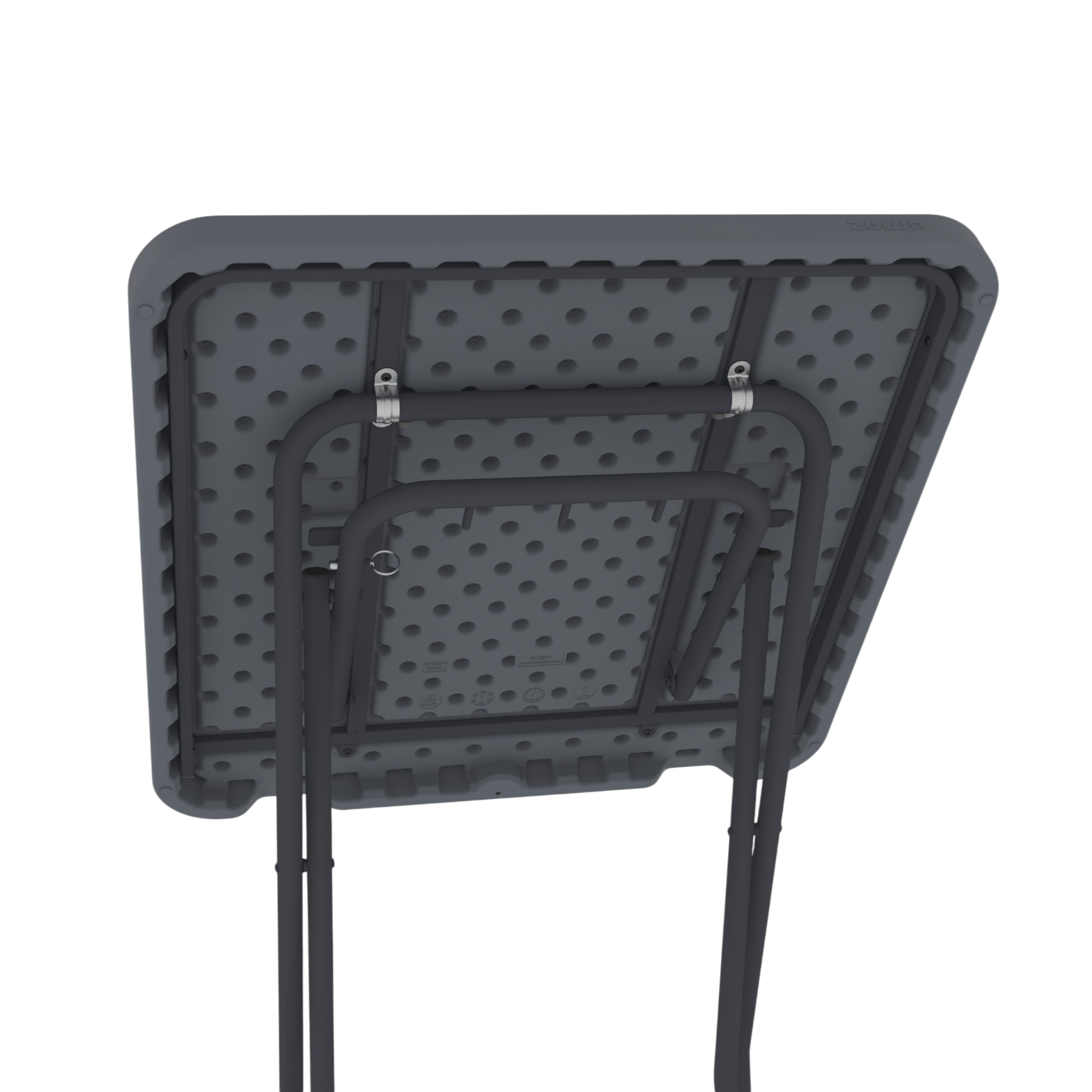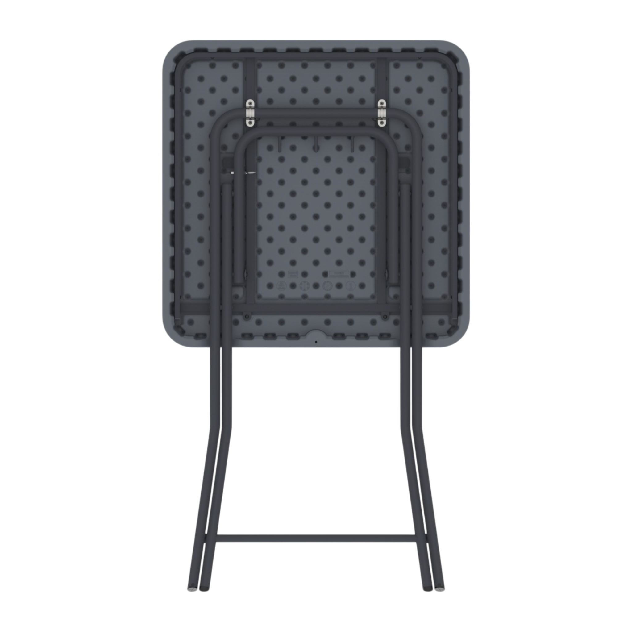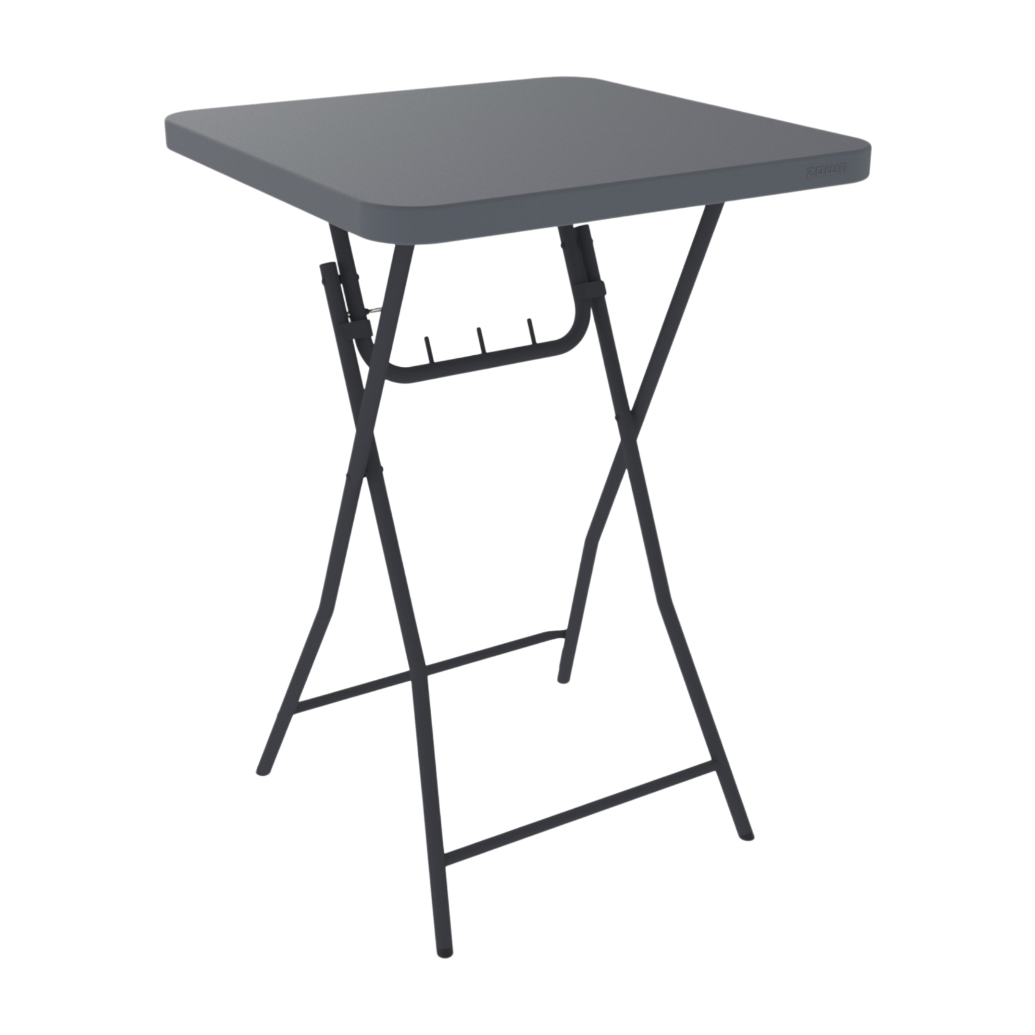 Cocktail XL76 is a professional, foldable standup table designed for receptions, trade shows, and networking events where flexibility and efficient handling are crucial. With a square tabletop measuring 76×76 cm and a height of 110 cm, the table creates a compact and functional gathering point, perfectly suited for both standing guests and use with bar stools.