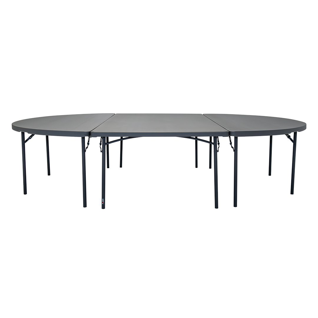 The table is designed for classic “imperial” setups and can be combined with the Ovo200 foldable table to create elegant oval table arrangements for larger parties.