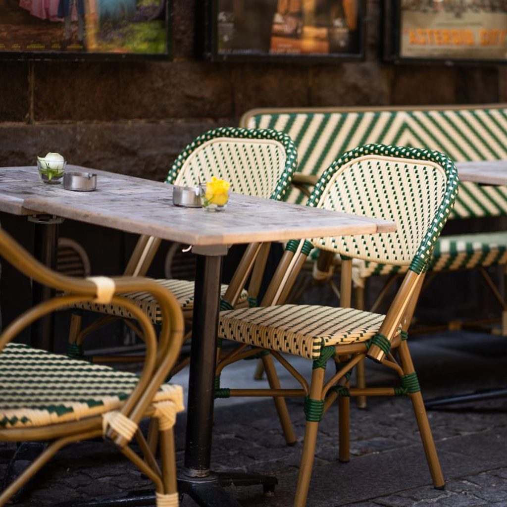 Our selection of cafe furniture is of the highest quality, which guarantees durable furniture for both indoor and outdoor use. If you want to further extend the lifespan of your frames, it is of course a good idea to store them indoors outside of the season. This will protect them from the harmful effects of weather conditions and significantly extend their lifespan, but it is not a direct recommendation.