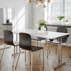 Common to the folding conference tables in the Dinner Style series is the modern and sleek expression. They are perfect for situations where people need to sit around the table. The meeting tables come in 8 sizes and 24 different combinations of tabletop and frame – 192 variants in total.