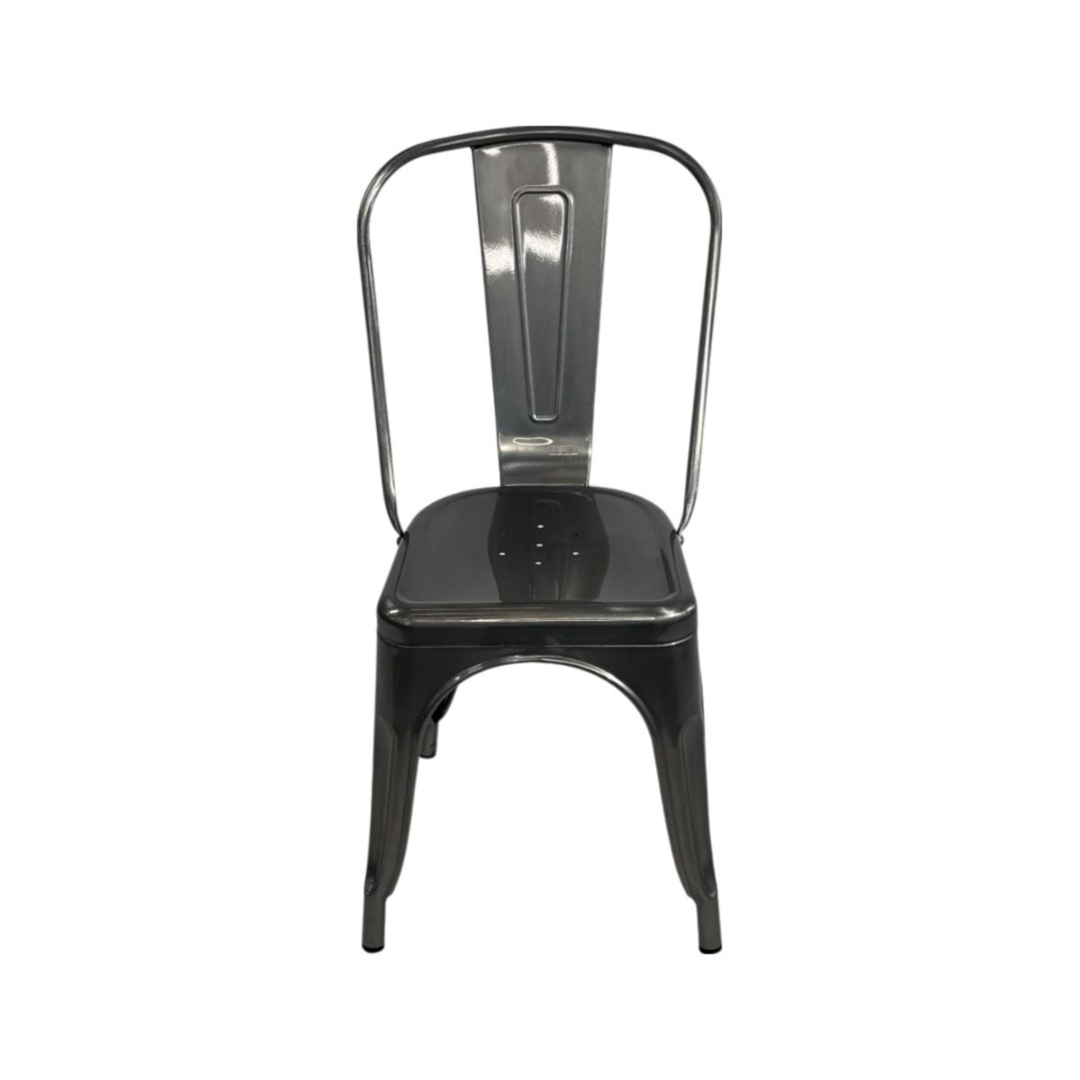 Create a modern and raw expression in your premises with this indoor metal bistro chair. Perfect for cafés, restaurants, office environments, and events where a sleek and robust seating option is desired.