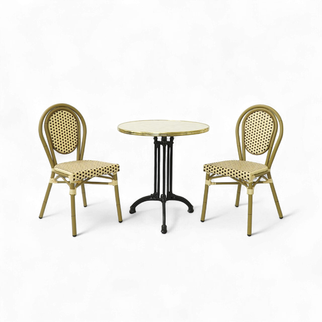 Vil du skabe en caféplads med et eksklusivt og naturligt udtryk – uden at skulle bruge tid på at matche møbler selv? Cafépakke Paris i brun-beige giver dig en komplet og gennemført løsning med to caféstole, rund bordplade og stabilt understel. Alt passer sammen i stil, kvalitet og funktion – og til en stærk pakkepris.