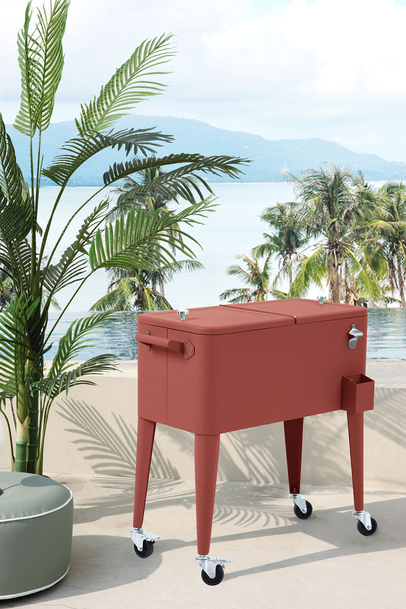 Complete your barbecue party or pool party with the cool cooler on wheels! The cooler consists of a steel structure and an interior made of polypropylene. The cooler has 4 wheels, of which 2 have brakes. Additionally, the cool cooler is equipped with a practical bottle opener, so you can quickly and easily open your beverages. Fill the cooler with ice and drinks, and let the party begin!