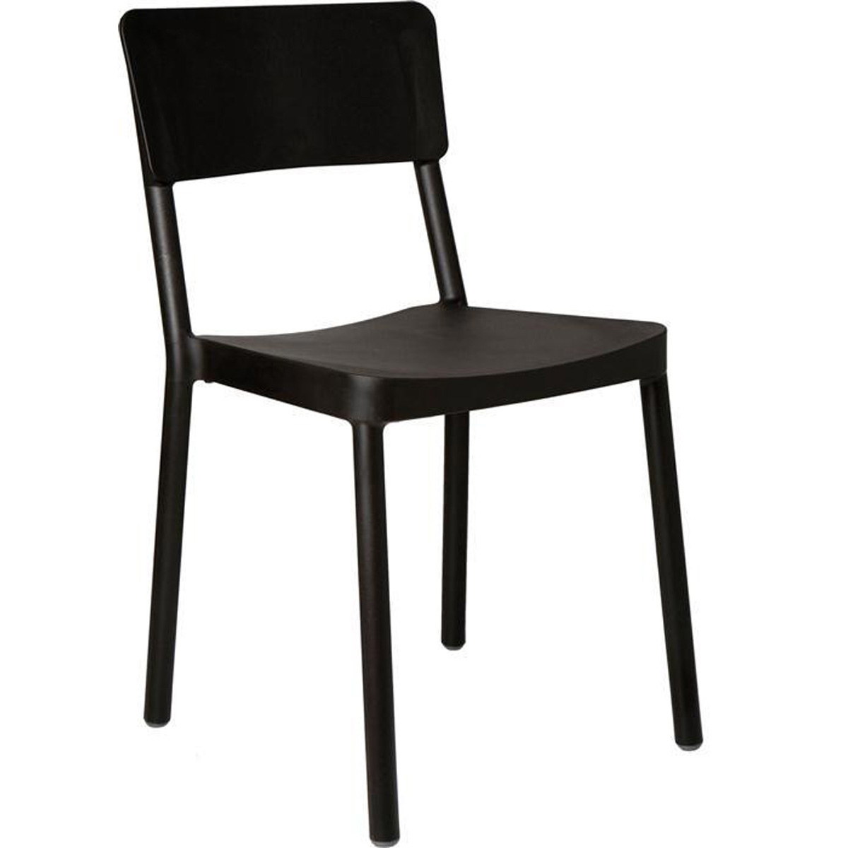 Stackable plastic chair in a contemporary, lightweight design. For use indoors and outdoors.