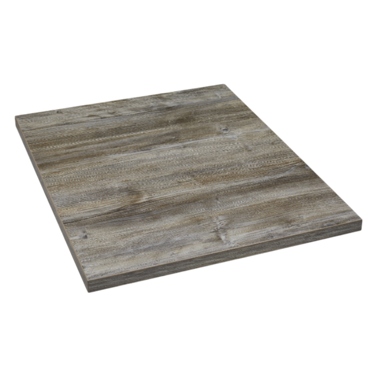 Create a warm and inviting atmosphere in your outdoor areas with the square Exteriolit tabletop in vintage pine look. This lightweight and robust tabletop combines natural wood aesthetics with modern materials – ideal for cafés, restaurants, and hotels where both design and durability matter.